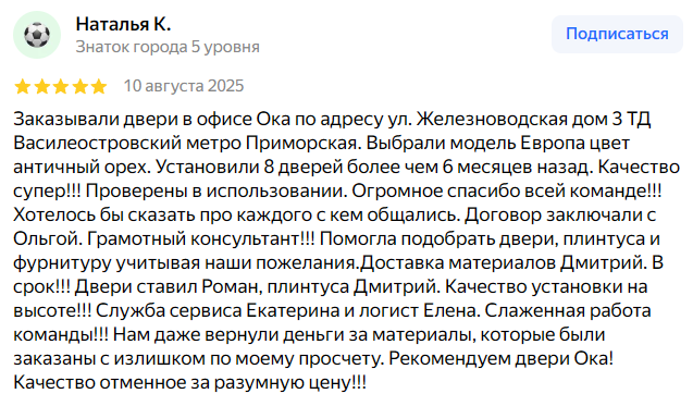Выбирая межкомнатную дверь из массива дуба, обратите внимание на модель Афина ПО — это гармоничное сочетание классики, прочности и высокой эстетики. Компания «Двери ОКА» производит двери из дуба на собственном оборудовании, с контролем качества на каждом этапе. Модель Афина ПО отличается устойчивостью к механическим повреждениям, надёжной фурнитурой и красивой фактурой древесины. Вы можете выбрать вариант с остеклением или глухой, в различных оттенках от светлого до насыщенного тёмного. Мы обеспечиваем полный сервис: бесплатный замер, доставка, установка по Москве и МО. Все работы выполняют квалифицированные монтажники с опытом. На двери и услуги предоставляется гарантия. Благодаря дубу, дверь Афина ПО не деформируется со временем и сохраняет геометрию. Это отличный выбор как для городской квартиры, так и для загородного дома. Закажите Афина ПО уже сегодня — и получите дверь, которая прослужит вам долгие годы.