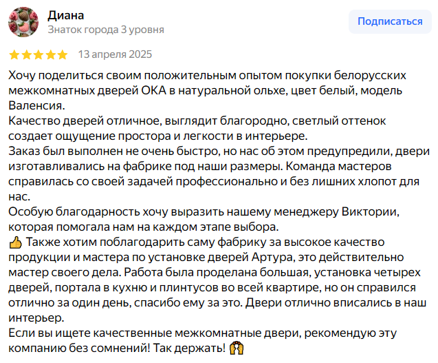 Межкомнатная дверь Даяна ПО 11 из массива ольхи — это надёжный выбор для тех, кто ценит натуральные материалы, тёплый оттенок древесины и классический стиль. Компания «Двери ОКА» предлагает широкий выбор моделей с разными типами остекления, оттенками и фрезеровками. Мы производим двери с соблюдением всех стандартов качества. Заказать дверь можно с точным замером, доставкой и установкой по Москве и Московской области. Наши специалисты выполняют монтаж аккуратно и в срок. У нас доступные цены и понятные условия. Каталог с фото, ценами и описаниями доступен онлайн.
